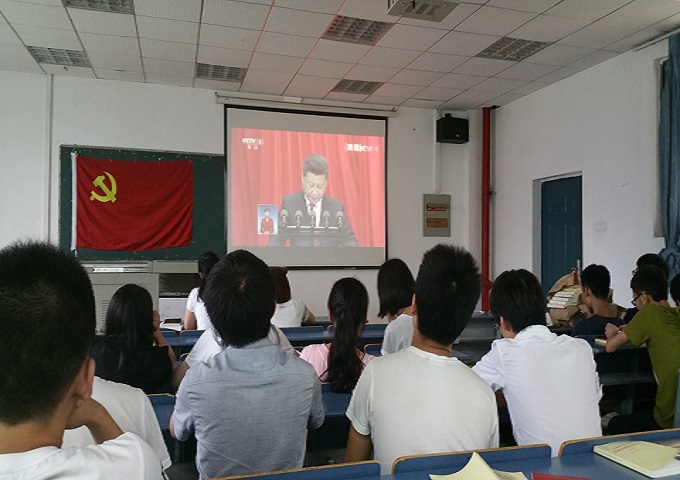 在校学生党员集中观看中共中央庆祝中国共产党成立95周年大会的实况,学习习近平总书记在庆祝大会上的重要讲话。