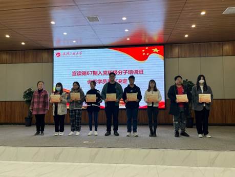 开班仪式在庄严的《国际歌》中拉开了帷幕,赵小硕首先宣读了第67期入党积极分子培训班优秀学员表彰决定,并表示希望受表彰的同学珍惜荣誉,戒骄戒躁,在今后的学习和工作中继续发挥先锋模范作用。