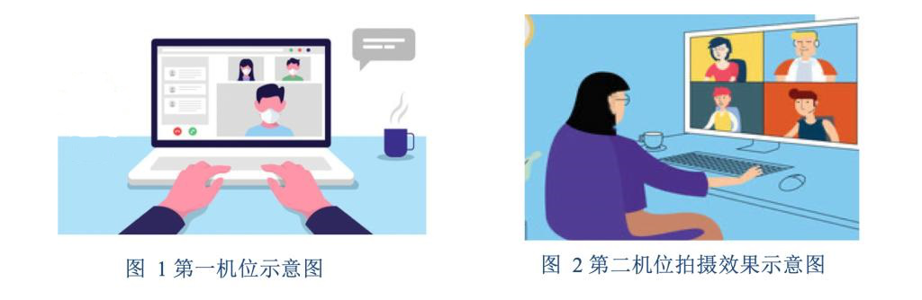 考生双手摆放桌面,第一机位正向面对考生,复试过程中全程开启,视频中考生界面底端始终不得高于胸部,双手须全程在视频录像范围。第二机位从考生侧后方45°距离本人1m处拍摄,可以拍摄到考生侧面及第一机位屏幕,需保证考官能够从第二机位清晰看到第一机位屏幕。
