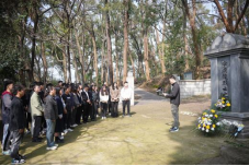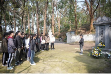 下午2点,活动正式开始。本科生第四党支部党员蔡俊首先介绍了武汉伏虎山烈士陵园的历史沿革,陵园内安葬着多位辛亥首义烈士,他们在中国近代史上都是响当当的人物。全体党员在烈士墓碑前庄严肃立,依次献花致敬,并集体默哀一分钟,向革命先烈们表达无限哀思和崇高敬意。