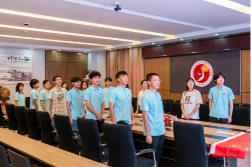出征仪式在庄严的国歌声中拉开序幕。同学们观看2023年暑期“三下乡”社会实践活动纪录片,“寻光”实践团代表葛昕羽以“态度”、“意义”、“记录”三个词向大家分享如何做好团队管理、报告撰写、总结宣传等实践经验,她用饱满的热情回顾了“三下乡”社会实践经历,分享了收获和成长,展示了团队的青春风采与青春力量。