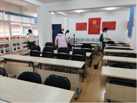 志愿者们对社区会议室进行清扫和布置,志愿者们挥汗如雨,充分展示了为人民服务的热情,经过志愿者们的清理和规整,社区会议室变得一尘不染,为社区工作人员提供了干净整洁的宣传环境。