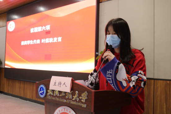 获奖学生代表叶蕊秋分享了自身学习历程,并代表所有获奖学生感谢北京来也网络科技有限公司的无私奉献,感谢学校的辛勤培育,感谢领导老师的亲切关怀!