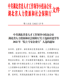 本网讯(通讯员 熊凡)近日,湖北省委人才工作领导小组办公室、湖北省人力资源与社会保障厅、湖北省经济与信息化厅公布了2022年“院士专家企业行”人选名单,全省高校院所共有330人入选该计划,我院卢涛、周华兵两位教授入选“院士专家企业行”计划。
