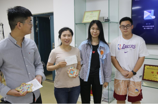 在轻松愉快的氛围下,朱向莹和还萍带领大家一起制作形式多样、色彩丰富的杯垫。制作完成后,毕业生在卡片上写下了对老师的感谢和祝福,在将礼物赠予老师手中的同时,也收获了老师对同学们的殷切关心和真诚祝福。