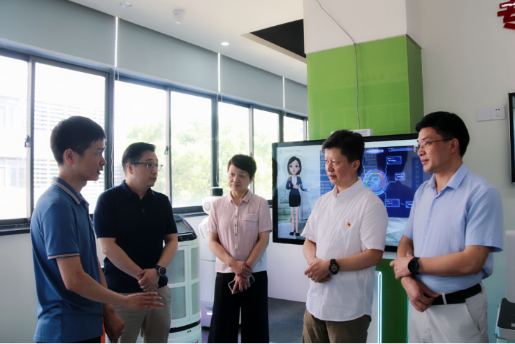 当天,卢涛随武汉市科协调研组一行来到力龙信息,实地参观了技术创新中心及政务机器人体验中心,听取了企业相关负责人关于公司发展、规划,以及产品研发、科技创新成果等方面的情况汇报,并围绕推动专家科创工作站进一步发挥作用、如何服务好企业创新发展等方面召开座谈会,进行了深入交流。活动现场,力龙信息相关人员演示了社区场景下通过“易小政”机器人办理失业保险金申领、以及政务大厅场景下通过“易小政”办理公共卫生许可证的全过程——人脸身份识别、语音识别操作、扫描资料、提交审查受理、出具审查结果、递送机器人前来收取并递送资料、服务评价。