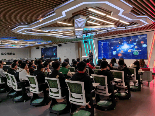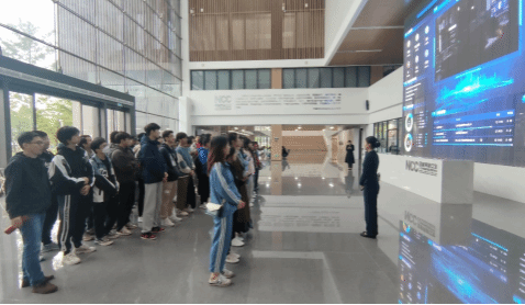 在展厅,讲解员为同学们讲解了网安基地的发展历程和技术实力,阐释了国家网安基地在承担网络强国使命过程中发挥的积极作用。
