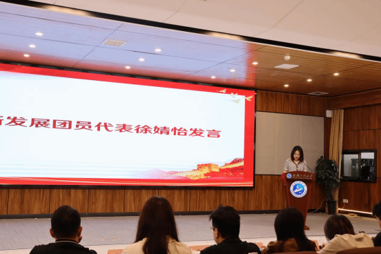 2021级软件工程2班徐婧怡同学作为新发展团员代表发言,她表示会珍惜此次学习机会,认真学习团课培训内容,时刻以团员的标准严格要求自己,发挥模范带头作用,不断提高自己的思想觉悟,坚定理想信念,牢记青年使命,树立远大理想,努力成为社会主义事业的可靠建设者和接班人!