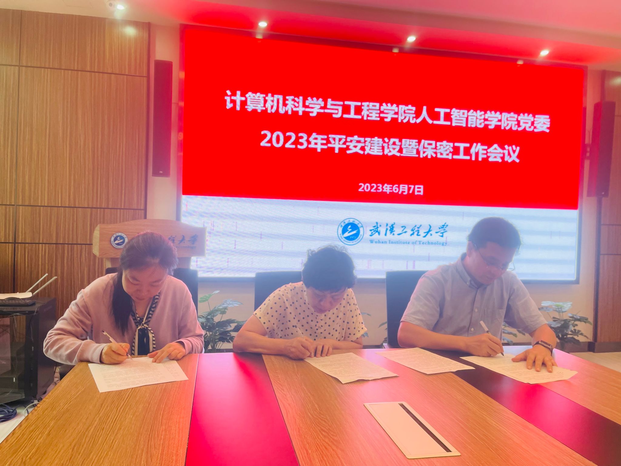 最后学院党委书记张炜和院长卢涛与专业教研室代表和实验中心共同签订了三级单位平安建设、消防安全、保密责任书,与会人员共同观看了保密宣传教育短片。