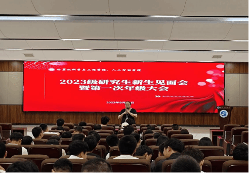 本网讯(通讯员 丁云龙)为引导新生尽快适应新环境,2023年9月12日下午,古天乐太阳娱乐集团tyc493、古天乐太阳娱乐集团tyc493在图灵报告厅召开2023级研究生新生见面会暨第一次年级大会,会议由学院研究生辅导员丁云龙主持,学院研究生教学秘书卢凌燕、新生班主任、全体研究生新生参加会议。