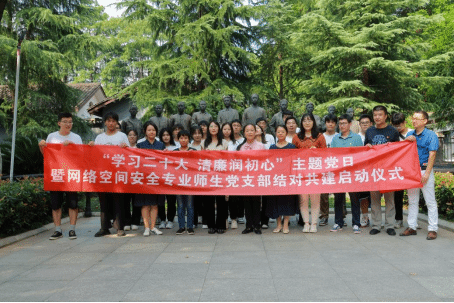 本网讯(通讯员 石欣平)为切实加强学院师生党员沟通交流,充分发挥教师党员对学生党员的示范引领作用,营造风清气正的校园文化氛围。9月15日下午,学院网络空间安全专业教研室党支部与本科生第四党支部前往武昌廉政文化公园联合开展“学习二十大 清廉润初心”主题党日暨支部结对共建启动仪式,学院党委书记张炜、党委副书记李琪娜、网络空间安全专业师生党员参与活动,活动由学院党务干事石欣平主持。